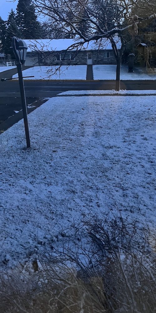 I’m up early, I look out the window, and what do I see? Snow.