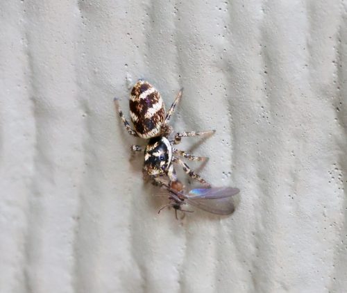 « Texas FAFO Yum These jumping spiders are ravenous, and are ripping through the local population of Diptera. Share this:PrintEmailShare on TumblrTweet « Texas FAFO
