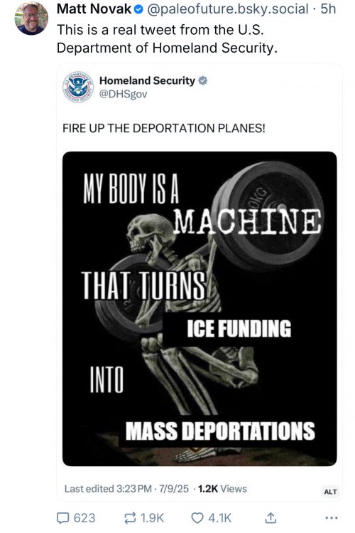 This is the way. Mock the executors of his policies to such a degree that even Trump begins to feel a faint hint of embarrassment, and TACO will look for a way to put the blame on someone. He’s even talking about a concept of a plan to maybe reduce the number of ICE goons in the state.
