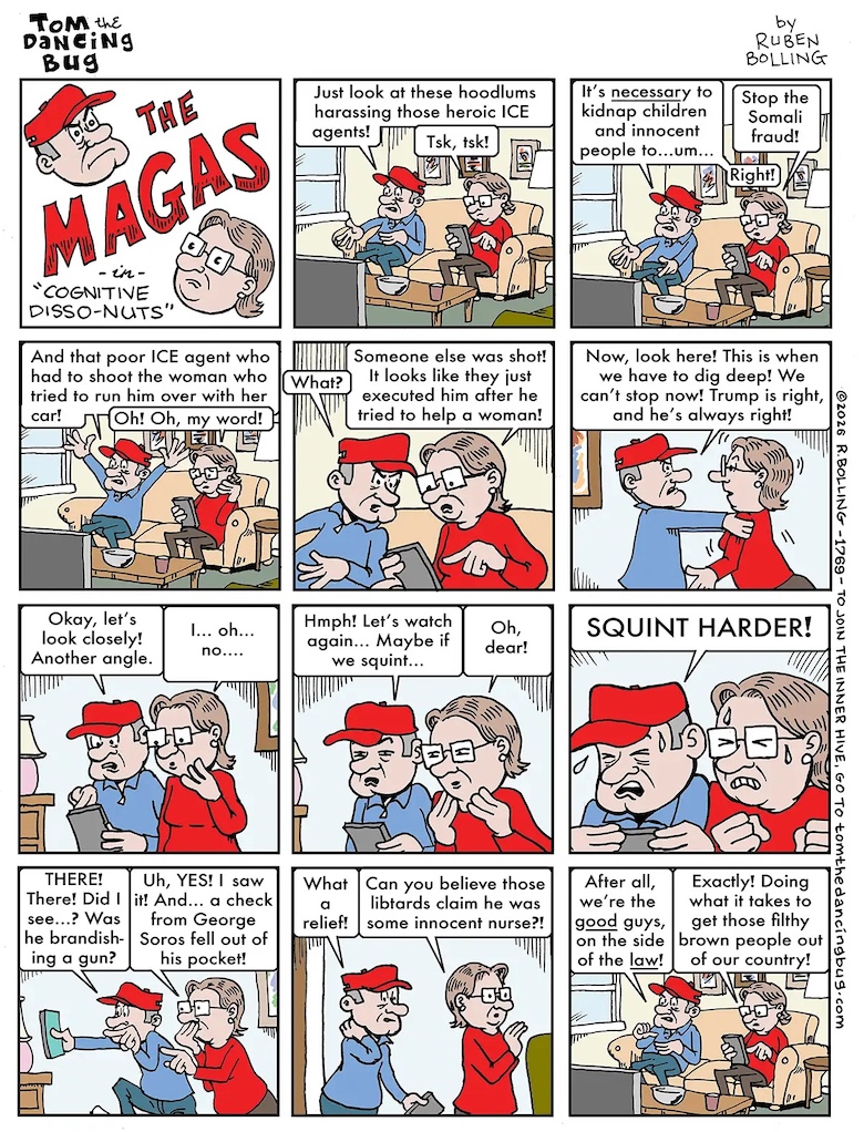 The strong nationwide reaction to the assault on communities and the murder of Renee Good and Alex Pretti by the ICE goons has clearly put the Trump gang on the negative. After starting with their usual lies that the two victims were domestic terrorists who were attacking the ICE thugs, they started to backtrack when the videos of the events taken by eyewitnesses from multiple angles showed that that they were innocent people gunned down by thugs who seemed to feel that they could act with impunity. I do not watch TV but read that these videos were shown repeatedly, making the Trump lies untenable.