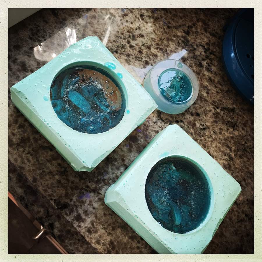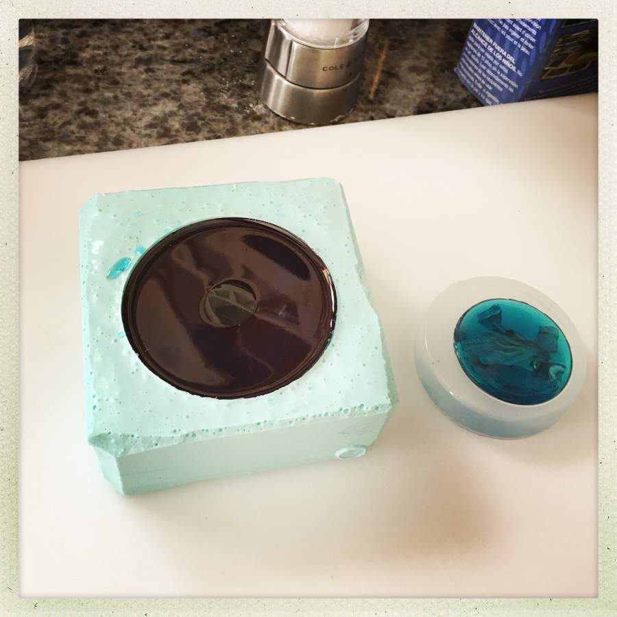 Then, I added a magnet and did a pour that just covered the magnet. Mistake #1: this is a fairly weak magnet. I have magnets that will pull your refrigerator door right off, and I thought I’d use something mild because, well, trying to be nice.