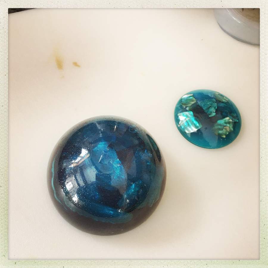 I built these up, as well. I did a thin layer of blue, then positioned abalone shells on it after it cured. Then I did another layer of blue around the abalone and let that cure, too.