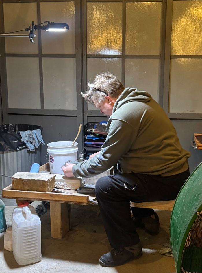 Then, The very next day I discovered this one super-sweet rock that was smooth as butter, made a delicious creamy clay, cut steel pretty fast, and was a fairly effective 200-grit foundation stone. Once I knew what I was looking for, I was able to go to the rock pile and steal a couple hundred pounds of that, and some other stuff. No, I did not swing by The Louvre in my distinctively dust-and-red colored truck (as if it would fit through Paris!).
