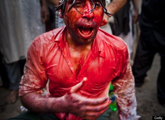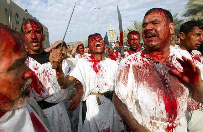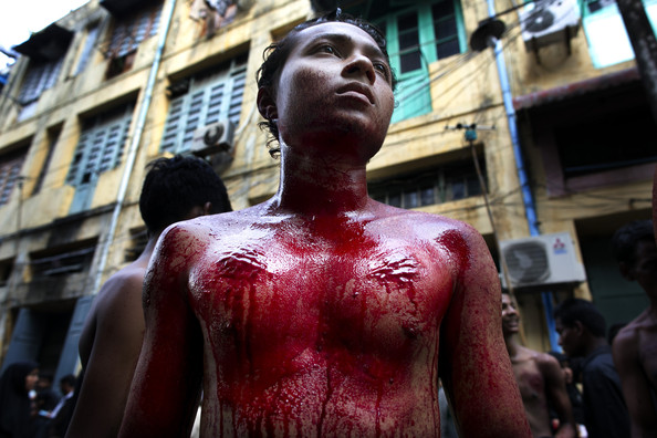 Imam Husain fought with Yazid ibn Muawiya in 680 CE for power. Husain was killed in the battle. But people still mourn for Husain. They physically torture themselves for the sake of their faith. The madness continues.